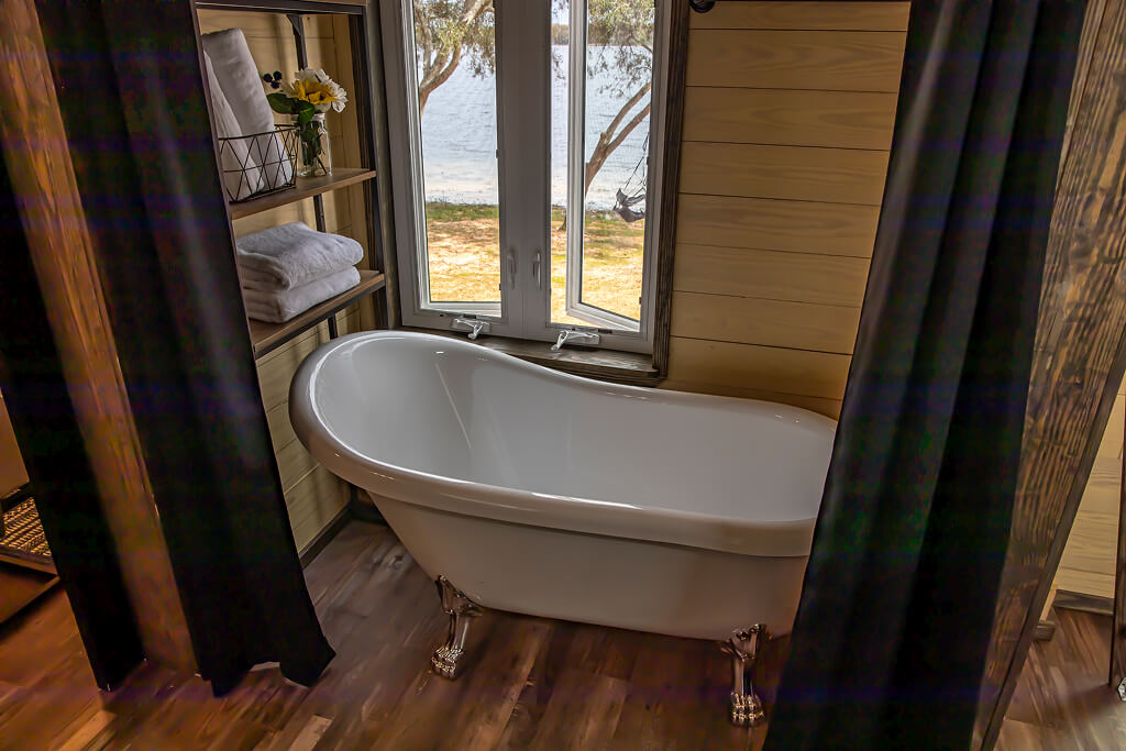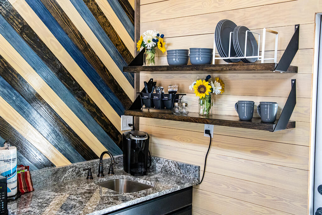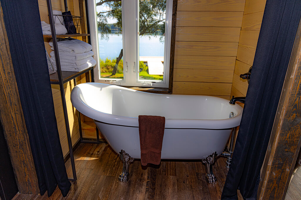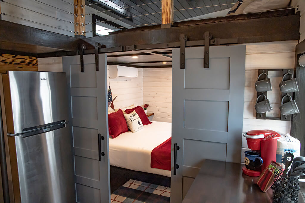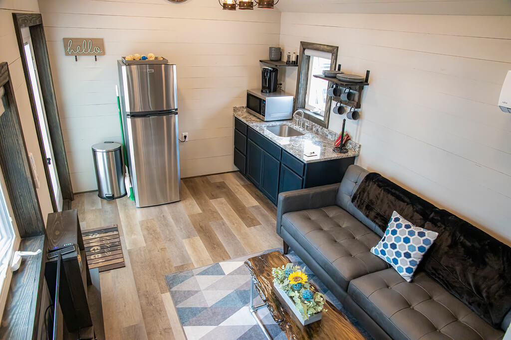 Charming tiny homes located along the Holley Lake shoreline, offering a cozy and modern retreat perfect for a peaceful getaway.